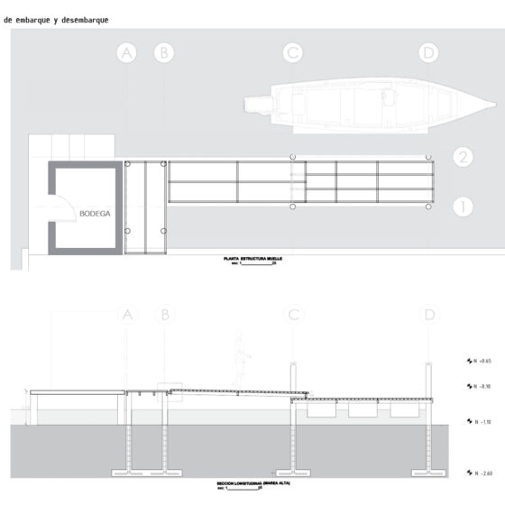 • El muelle flotante se adapta a la necesidad que expresó la comunidad de adaptarse al desnivel de 1 metro entre el nivel de la tierra y la marea baja, ya que el nivel del agua sube aproximadamente un metro dos veces al día. Se sugirió que el área de embarque sea flotante, como se ha hecho tradicionalmente en los muelles de la zona, para garantizar la accesibilidad para todas las personas, especialmente para los adultos mayores, ya que el desnivel actual impide el acceso a las barcas.