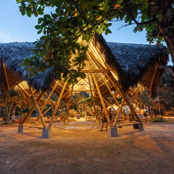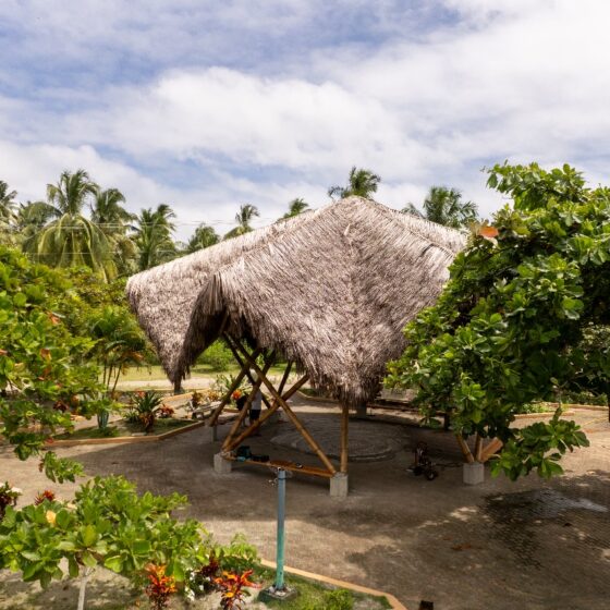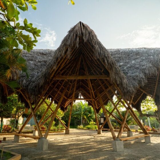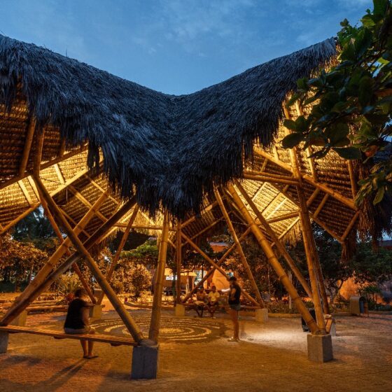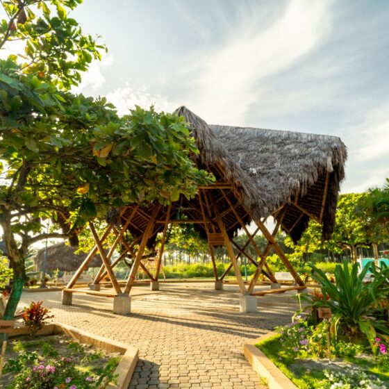 El proyecto adopta técnicas constructivas tradicionales del litoral ecuatoriano, como el uso del bambú y la paja toquilla, materiales que responden tanto a condiciones climáticas como a criterios culturales y estructurales. Estas soluciones vernáculas no solo optimizan la funcionalidad del espacio, sino que también revalorizan saberes ancestrales transmitidos oralmente de generación en generación. A través de talleres comunitarios, se impulsó la participación activa de habitantes y jóvenes locales, fomentando la transmisión intergeneracional de conocimientos y el fortalecimiento del tejido social.