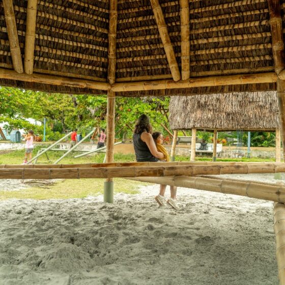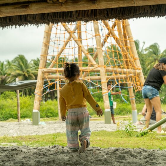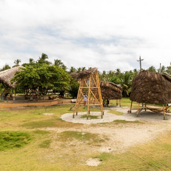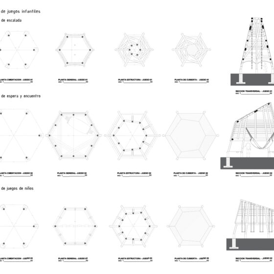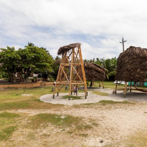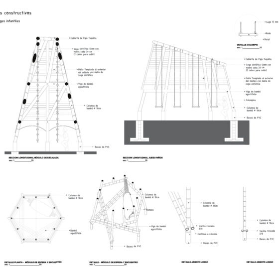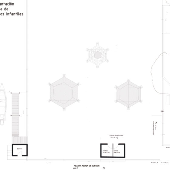• Los juegos infantiles, concebidos como una “aldea del palenque”, un espacio multifuncional de exploración para la infancia que consiste en tres estructuras visibles, que sirvan como puntos de encuentro y generen recuerdos para los niños, revalorizando el uso del bambú y la paja toquilla. Se realizó un estudio sobre las actividades que los niños realizan, alejándose de los modelos urbanos preestablecido, se propusieron actividades como escalada en redes, un módulo de espera y encuentro y un módulo de juegos infantiles, en el que se incluyen columpios para los niños. Un aspecto fundamental es la creación de áreas sombreadas para los juegos, ya que el clima soleado dificulta su uso adecuado. El objetivo es convertir esta área en un espacio familiar, donde los adultos puedan observar a los niños mientras esperan las barcas.