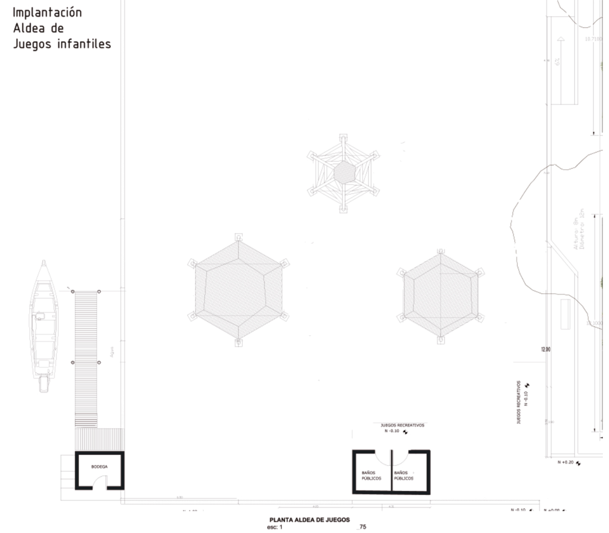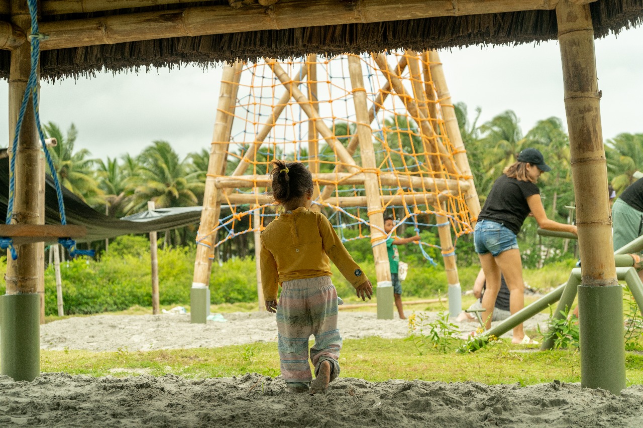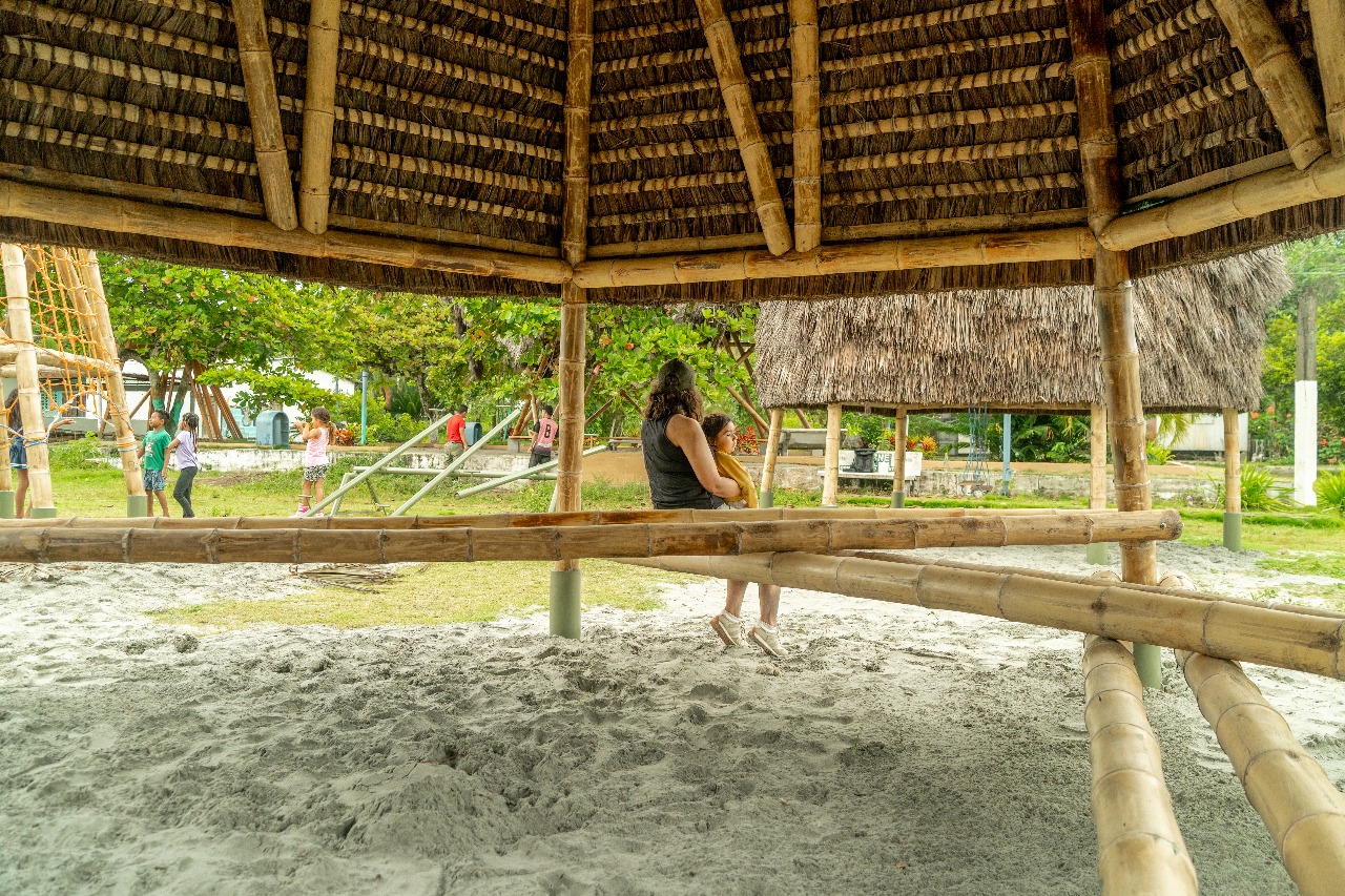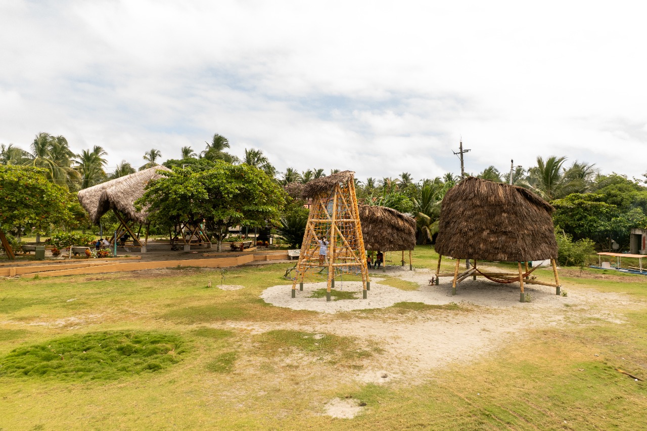 • Los juegos infantiles, concebidos como una “aldea del palenque”, un espacio multifuncional de exploración para la infancia que consiste en tres estructuras visibles, que sirvan como puntos de encuentro y generen recuerdos para los niños, revalorizando el uso del bambú y la paja toquilla. Se realizó un estudio sobre las actividades que los niños realizan, alejándose de los modelos urbanos preestablecido, se propusieron actividades como escalada en redes, un módulo de espera y encuentro y un módulo de juegos infantiles, en el que se incluyen columpios para los niños. Un aspecto fundamental es la creación de áreas sombreadas para los juegos, ya que el clima soleado dificulta su uso adecuado. El objetivo es convertir esta área en un espacio familiar, donde los adultos puedan observar a los niños mientras esperan las barcas.
