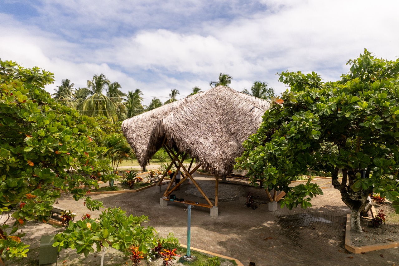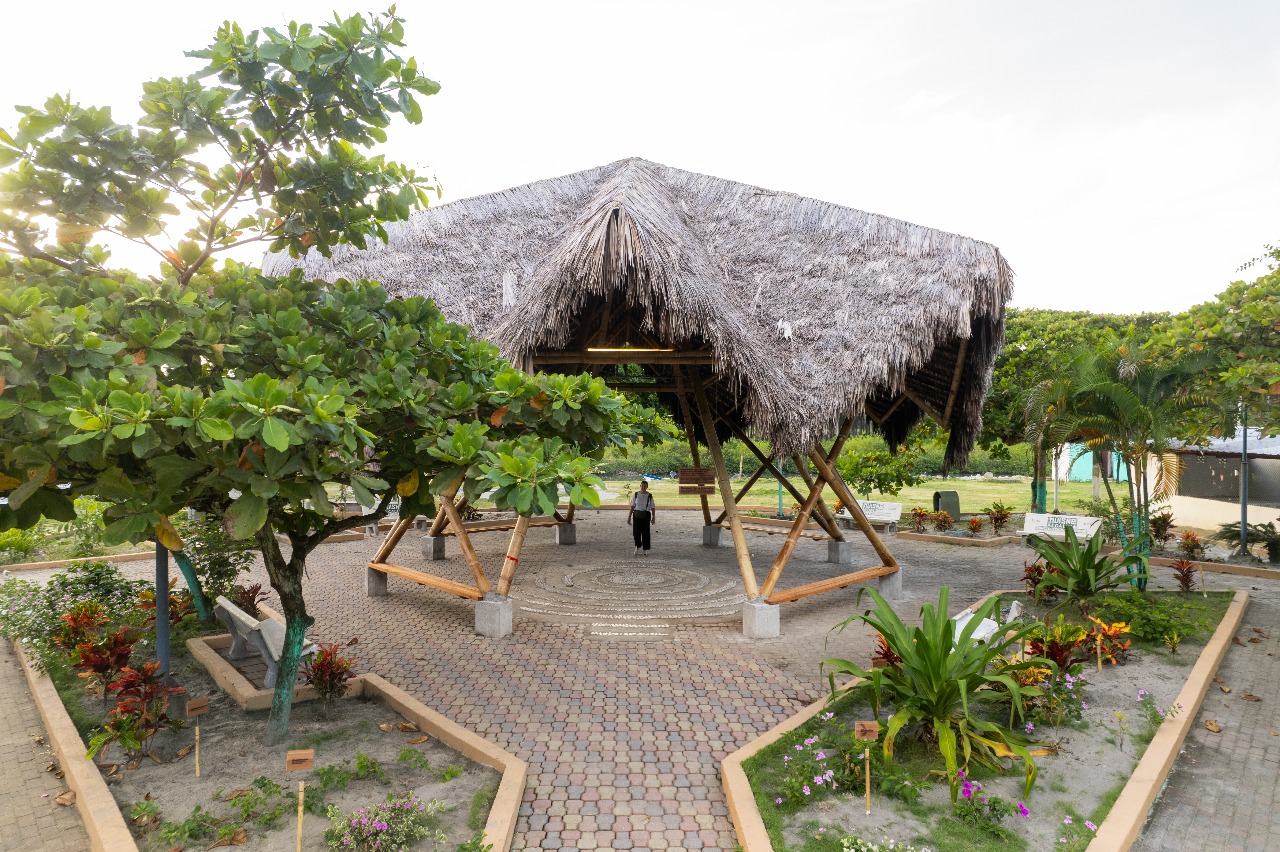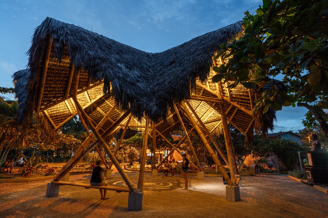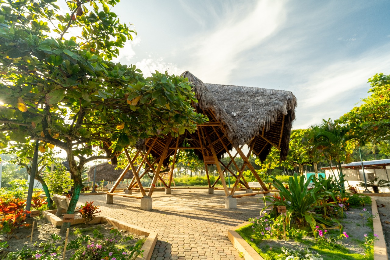 El proyecto adopta técnicas constructivas tradicionales del litoral ecuatoriano, como el uso del bambú y la paja toquilla, materiales que responden tanto a condiciones climáticas como a criterios culturales y estructurales. Estas soluciones vernáculas no solo optimizan la funcionalidad del espacio, sino que también revalorizan saberes ancestrales transmitidos oralmente de generación en generación. A través de talleres comunitarios, se impulsó la participación activa de habitantes y jóvenes locales, fomentando la transmisión intergeneracional de conocimientos y el fortalecimiento del tejido social.