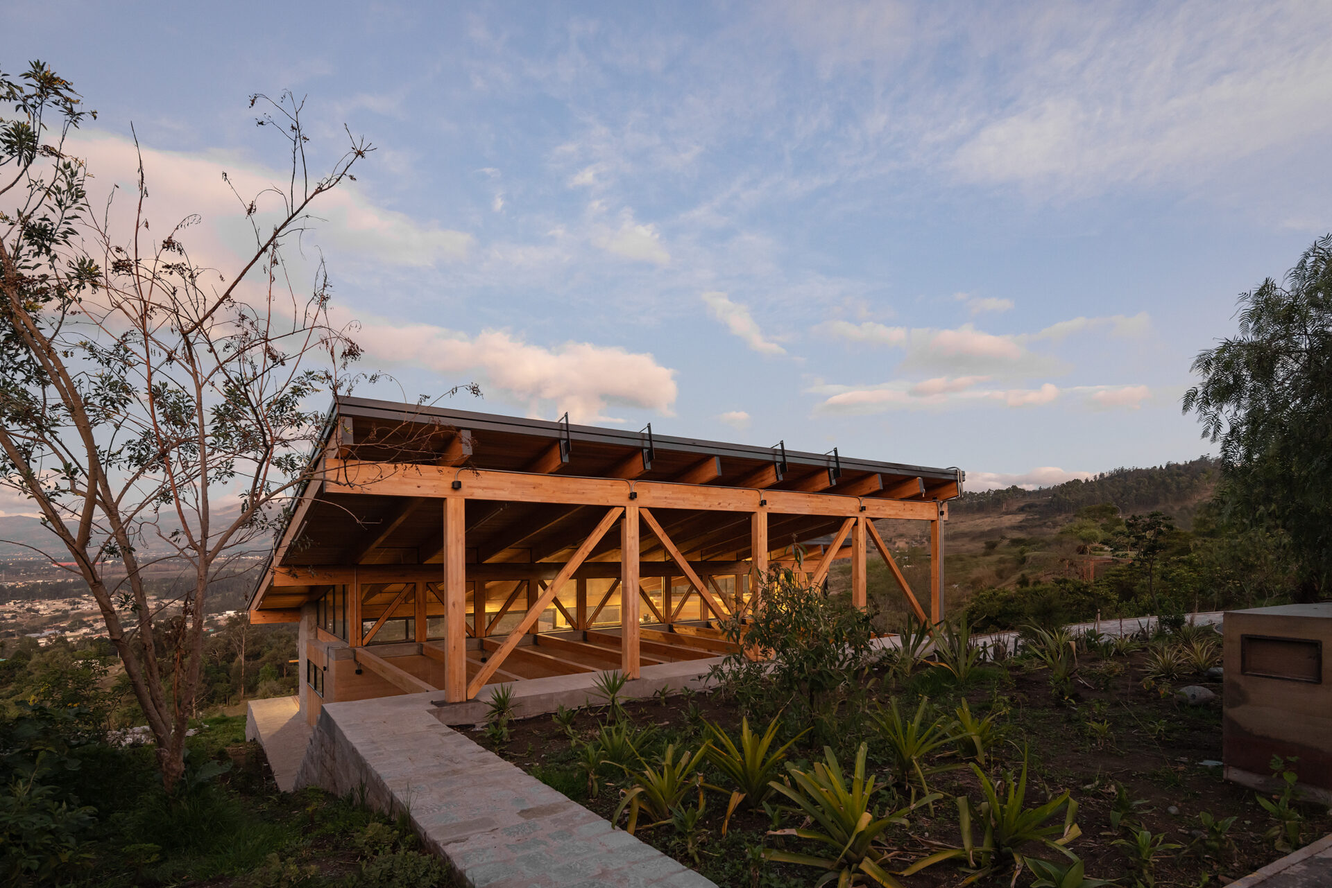 La estrategia principal del proyecto fue comprender a profundidad el terreno y sus condiciones: su topografía, sus vistas, su orientación y su vegetación. A partir de este análisis, se decidió no intervenir de    forma agresiva, sino trabajar con la pendiente natural, quebrando ligeramente el volumen para adaptarse a las curvas de nivel. Esta decisión permitió que la implantación se realizará sin cortes ni rellenos, manteniendo la estructura original del suelo y reduciendo al mínimo la huella ecológica.