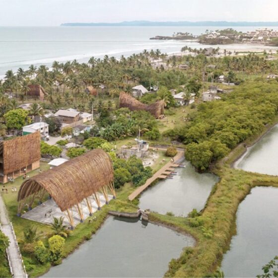 The elements have the same architectural language that responds to the construction system of bamboo and toquilla. The infrastructures are showy for their morphology which is designed from the technique to achieve greater structural resistance. The long slopes link the volumes to the natural landscape that blends in between the palm groves. Each built element is self-sustaining and includes groundwater collection systems, sewage treatment through biodigesters, biological filters, and infiltration fields. The winds are used to pump water and generate clean energy for each infrastructure. The island is conceived as a living organism with synergies between its environment and its resources.